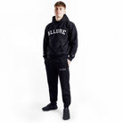 Crafted from a soft, durable fabric, these sweatpants deliver a comfortable feel without sacrificing durability. The elastic waistband with an adjustable drawstring ensures a custom fit, while the cuffed bottoms add a touch of varsity-inspired style. The minimalist black design pairs seamlessly with any top, making these sweatpants a versatile staple in your fight wear wardrobe.